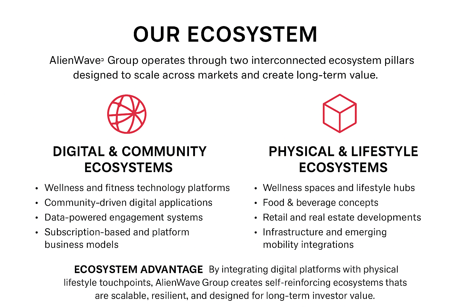 AlienWave Group builds and manages interconnected businesses across multiple sectors: